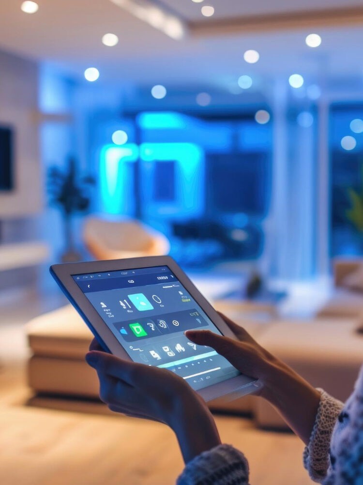 Systemy sterowania oświetleniem: Pozwalają one na zdalne sterowanie oświetleniem w domu za pomocą smartfonów lub głosu, zapewniając wygodę i oszczędność energii poprzez automatyczne wyłączanie świateł w pomieszczeniach, w których nie ma obecności.